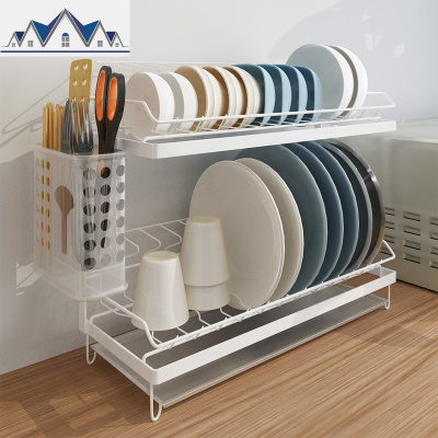 碗架沥水架双层碗碟架 家用厨房置物架晾放碗盘子收纳篮 三维工匠