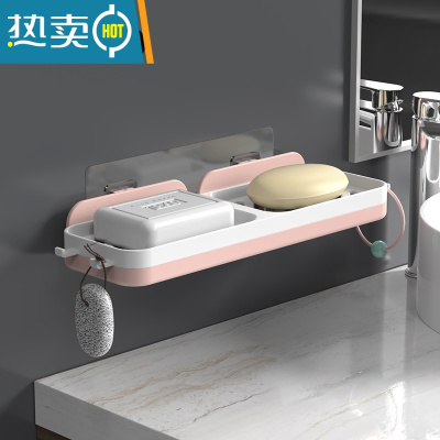 敬平肥皂盒香皂置物架家用壁挂式免打孔浴室创意沥水收纳架不积水 双格沥水皂架[粉白]2个装