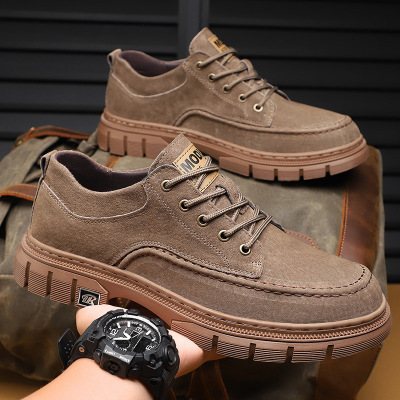 男鞋真皮高档磨砂户外运动休闲登山防滑耐磨软底猪皮八爪鱼休闲鞋