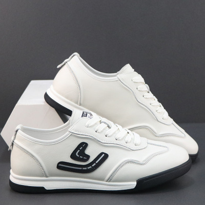 男生头层牛皮厚底板鞋男款潮鞋欧洲站男鞋真皮男士潮牌运动休闲鞋