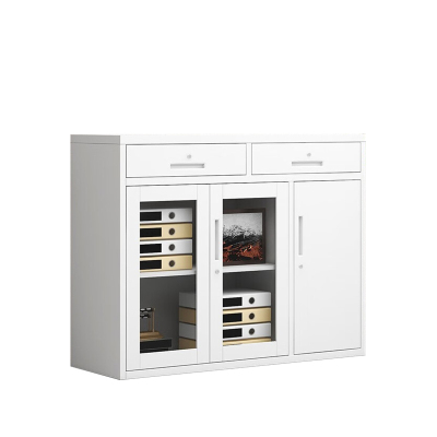 [理政]油漆文件柜 现代中式 办公柜 三门书柜 玻璃文件储物柜 三门落地资料柜