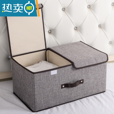 棉麻折叠收纳箱衣柜大号衣服收纳筐布艺收纳盒整理箱储物箱 三维工匠