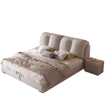 意式真皮床1.5米家用出租房单人床 1.8米主卧室双人大床 现代轻奢软包床 高级感婚床 舒适简约(多色可选 拍下请备注)