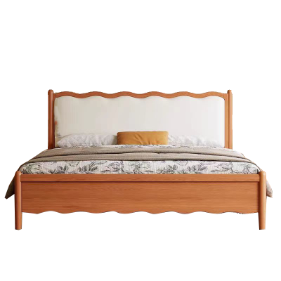北欧实木复古双人床1.8m波浪床1.5m中古风床现代简约软包婚床卧室