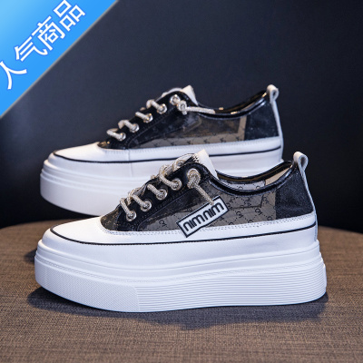 SUNTEK粉色厚底帆布鞋女春夏新款chic小众设计学生圆头休闲饼干小白鞋子