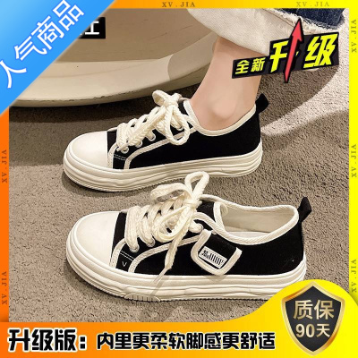 SUNTEK网红小香风帆布女鞋子2023春夏新款百搭平底小白休闲运动板鞋