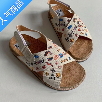 SUNTEK刺绣凉鞋女夏新款软底魔术贴小众度假可爱少女百搭沙滩泰国手工鞋