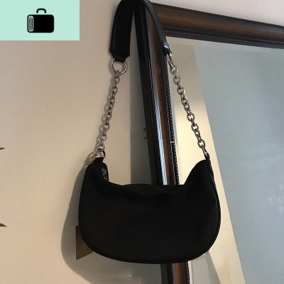 2020春夏新款尼龙布包包百搭腋下包复古法棍包小红书同款链条包NEW LAKE 黑色女士单肩包