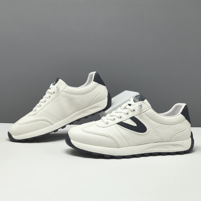 男生头层牛皮透气板鞋男款潮鞋真皮欧洲站男士免系带小耳朵休闲鞋
