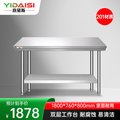 意黛斯 不锈钢双层工作台 厨房操作台置物架打荷台 双层操作台1800*760*800 YDS-2T1876 201材质