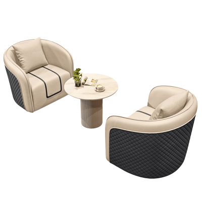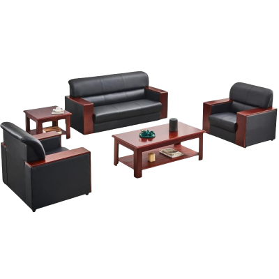 苏宁 金菲罗格 办公家具 现代简约接待会客西皮黑色沙发 三人位+长茶几