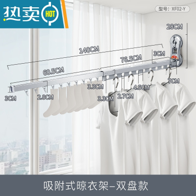 敬平免打孔晾衣架家用阳台壁挂式隐形折叠凉晒衣架室内伸缩晾衣杆器 [双盘款·极光银]免打孔·晾衣架 大