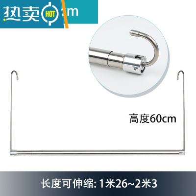 敬平阳台伸缩晾衣杆晒被子器衣架单杆折叠隐形家用床单挂钩不锈钢 长度126~230cm可伸缩 高60厘米 不锈钢