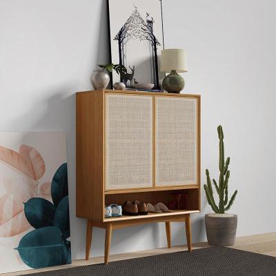 森美人北欧实木鞋柜简约现代厅玄关柜创意多功能餐边柜藤编储物收纳柜