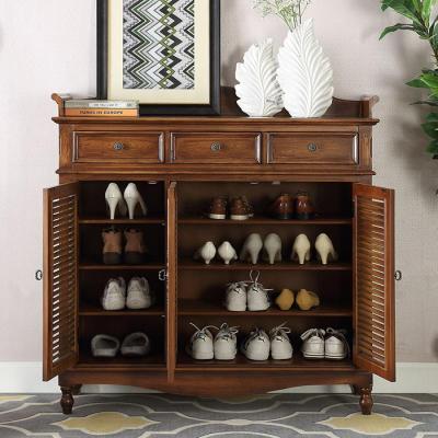美式百叶实木鞋柜多层大容量三两厅柜复古简约储物玄关柜家用
