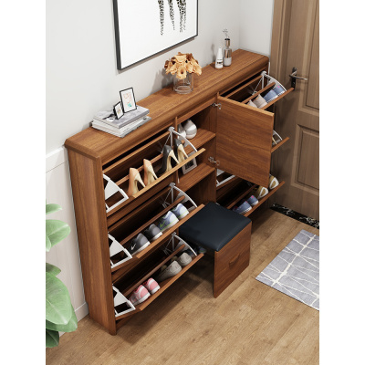 汐岩中式超薄鞋柜17cm简约现代翻斗厅柜省空间家用储物柜实木玄关柜