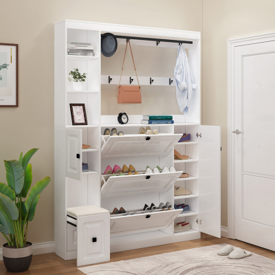 森美人鞋柜家用口多功能储物柜超薄翻斗衣架一体家用大容量衣帽厅柜