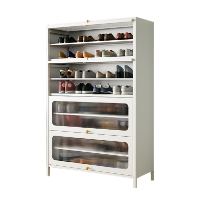 DXBG家用门口鞋柜室内入户储物柜一体翻门钢制4门8层80宽-白