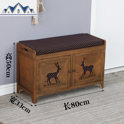 敬平美式全实木换鞋凳家用门口入户可坐式穿鞋柜欧式玄关储物收纳鞋架收纳凳