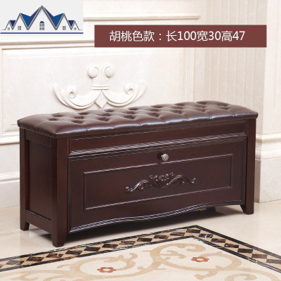 美式实木换鞋凳家用口鞋柜穿鞋凳厅可坐式沙发凳收纳储物凳子 三维工匠收纳凳