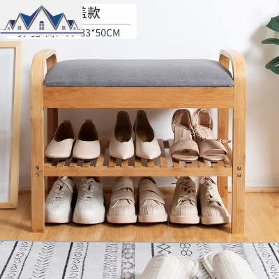 实木现代简约口收纳换鞋凳竹可坐鞋架小户型鞋柜多功能穿鞋凳 三维工匠收纳凳