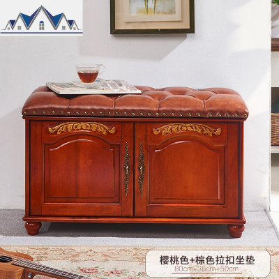 美式换鞋凳鞋柜家用口可坐收纳经济型床尾实木试鞋穿鞋凳子 三维工匠收纳凳