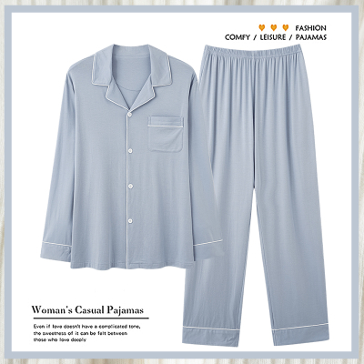 男士睡衣秋冬季莫代尔纯色长袖长裤开衫套装简约休闲可外穿家居服