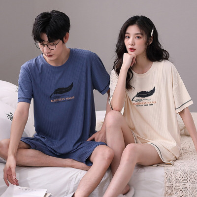 夏季情侣睡衣纯棉女士可爱卡通短袖短裤男士宽松家居服套装可外穿