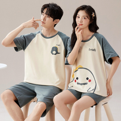 夏季情侣睡衣女士休闲卡通棉质短袖短裤青年男士韩版可外穿家居服
