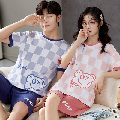 夏季情侣睡衣棉质短袖女士可爱卡通男士青少年休闲宽松家居服套装