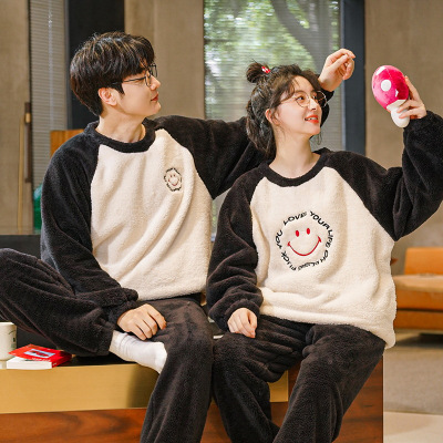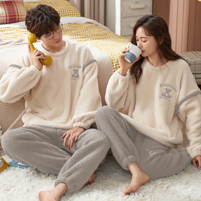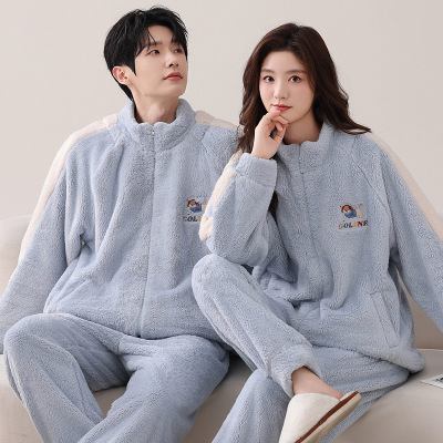 情侣睡衣女款春秋冬季珊瑚绒加厚加绒保暖一男士一女士家居服套装