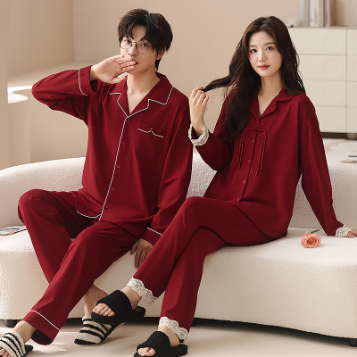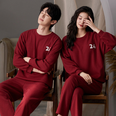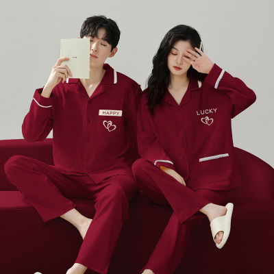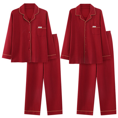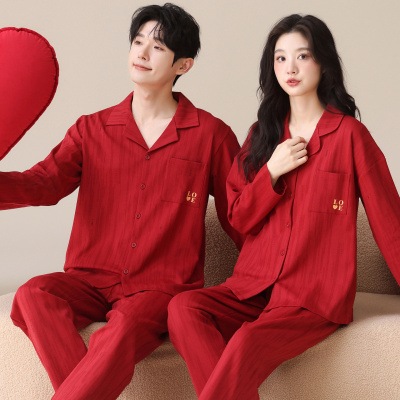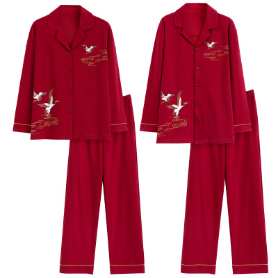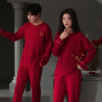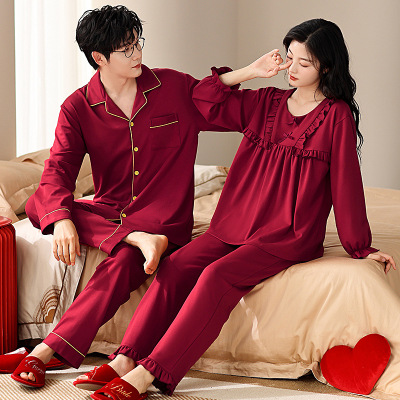 情侣睡衣春秋冬季棉质本命年喜庆结婚红色一男士一女士家居服套装