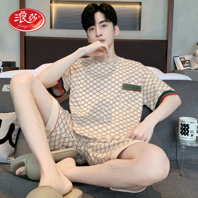浪莎纯棉睡衣男款短袖五分裤夏季薄款全棉休闲大码家居服两件套装