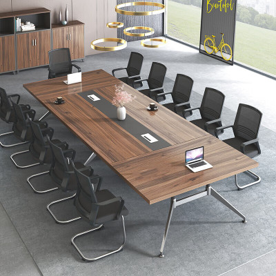 域赢钢架会议桌洽谈桌简约现代长条桌会客桌400*140cm含14椅