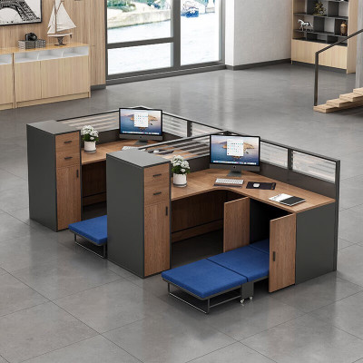 域赢屏风办公桌职员位电脑桌财务桌隔断卡座含折叠午休床7字型2人位