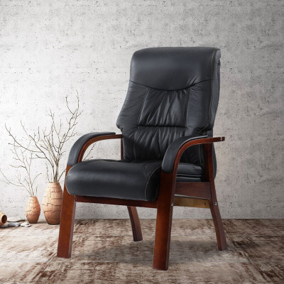 域赢实木椅电脑椅大班椅老板椅会议洽谈椅家用办公椅子人体工学四脚实木椅-E