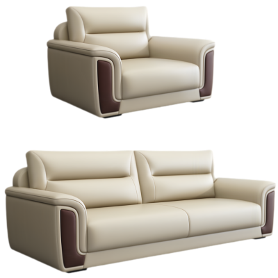 蒙卡森 办公沙发商务接待沙发洽谈沙发会客沙发牛皮MSF-42/张-1+1+3+大小茶几