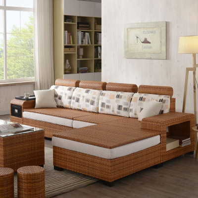 藤沙发组合大小户型客厅现代转角藤椅沙发中式藤编布艺沙发三人组