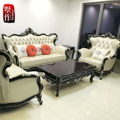 欧式沙发组合现代客厅皮艺沙发大小户型单双三人位花沙发