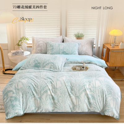 悠梦嘉居 7D雕花绒暖芙四件套 3500克 被套+床单+枕套*2 奇幻森林蓝绿 YJ-14561