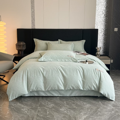 悠梦嘉居 全棉长绒棉磨毛刺绣四件套 1.5/1.8床可使用 被套+床单+枕套*2 碧水绿 YJ-14569
