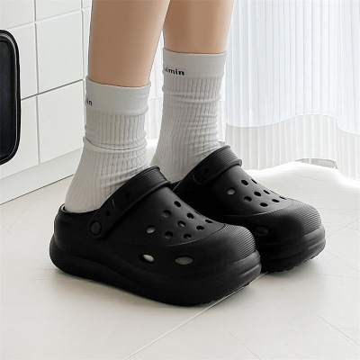 大码女鞋夏季新款百搭EVA轻便透气防滑洞洞鞋厚底增高套脚花园鞋