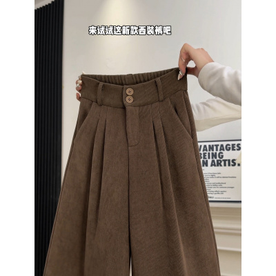 咖色灯芯绒西装裤女秋冬季高腰垂感直筒美拉德棕色加绒加厚阔腿裤