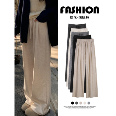 糯米裤女秋冬新款小个子加绒加厚高腰垂感显瘦窄版直筒阔腿裤