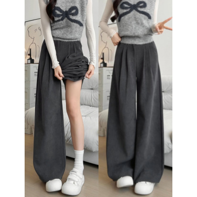 羊羔绒糯米裤女秋冬小个子加绒加厚高腰显瘦垂感直筒窄版阔腿裤子