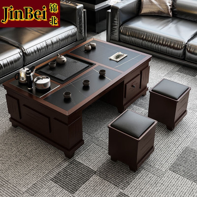 锦北 火烧石功夫茶几茶桌椅组合茶具一体套茶台一键上水 1.2米胡桃色