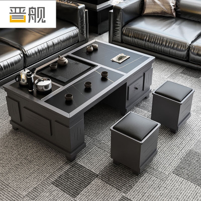 晋舰 火烧石功夫茶几茶桌椅组合茶具一体套装茶台一键上水 1.3米宝马灰