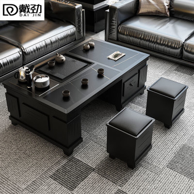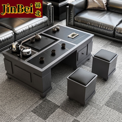 锦北 火烧石功夫茶几茶桌椅组合茶具一体套茶台一键上水1.5米黑色