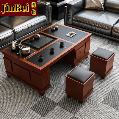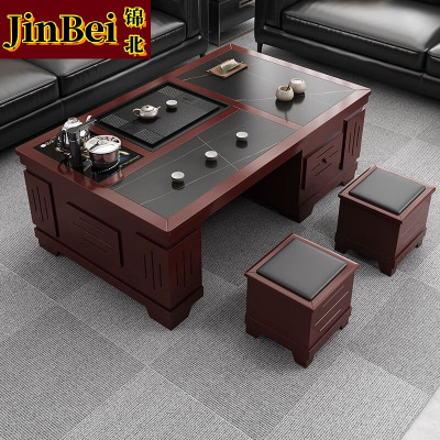 锦北 火烧石功夫茶几茶桌椅组合茶具一体套茶台一键上水1.5米柚木红