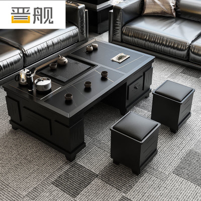 晋舰 火烧石功夫茶几茶桌椅组合茶具一体套装茶台一键上水 1.5米黑色